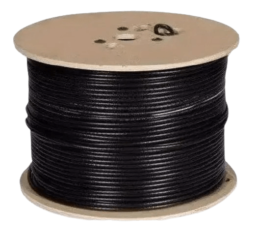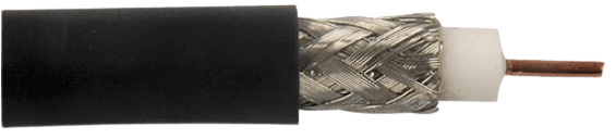 Cuenta con conductor de acero revestido en cobre, dielético polietileno espumado, escudo laminado, 67% trenzado de aluminio y recubrimiento de PVC negro.