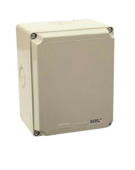 Caja de derivación de PVC cuadrada ciega de 300x220x148mm, con tapones.