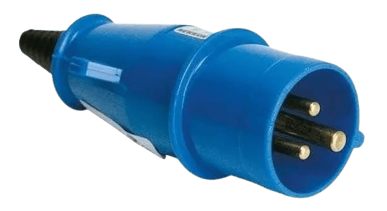 Ficha industrial macho 2P+T, de 16A 200/250V.