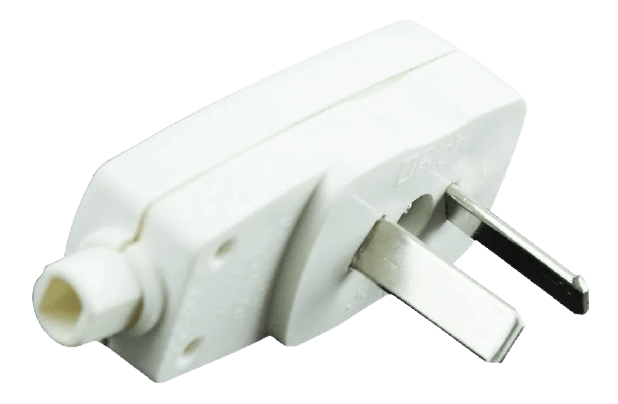 Ficha macho bipolar sin toma de tierra, con salida lateral.