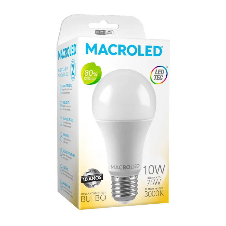 abril 19, 2026Lámpara LED 10W A60 E27 Cálida Macroled