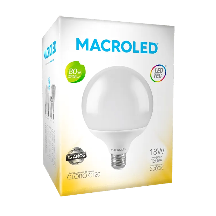 Lámpara LED 18W E27 Globo 120 Cálida Macroled