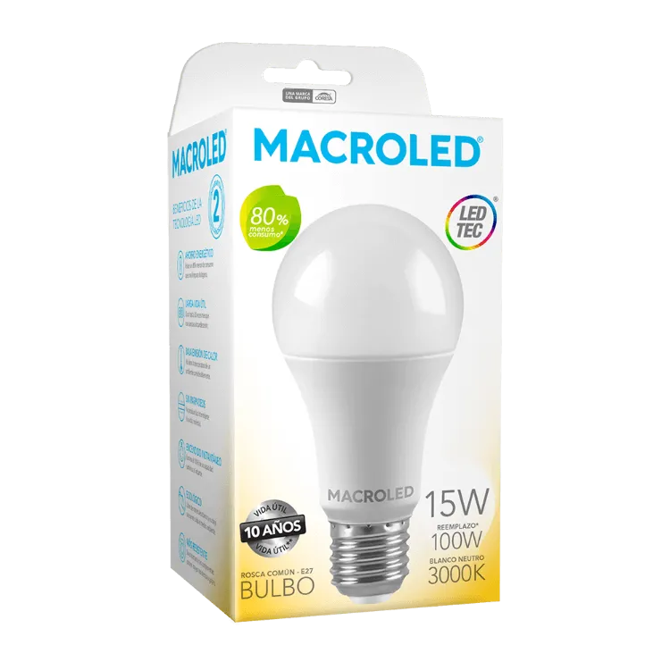 abril 19, 2026Lámpara LED 15W A60 E27 Cálida Macroled