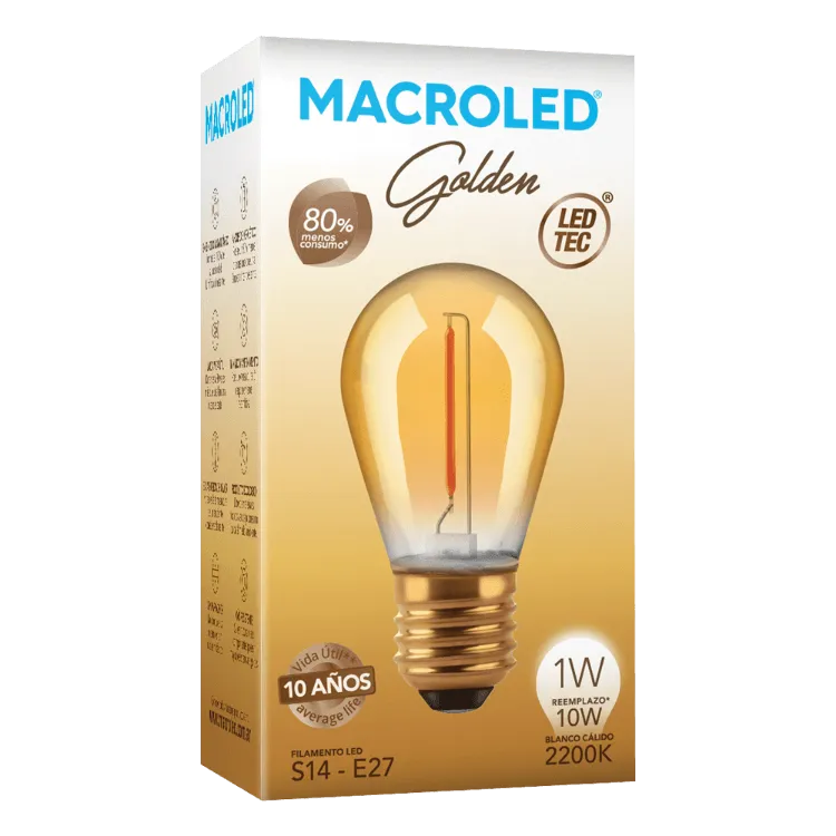 abril 19, 2026Lámpara LED 1W E27 Golden Retro Filamento Macroled