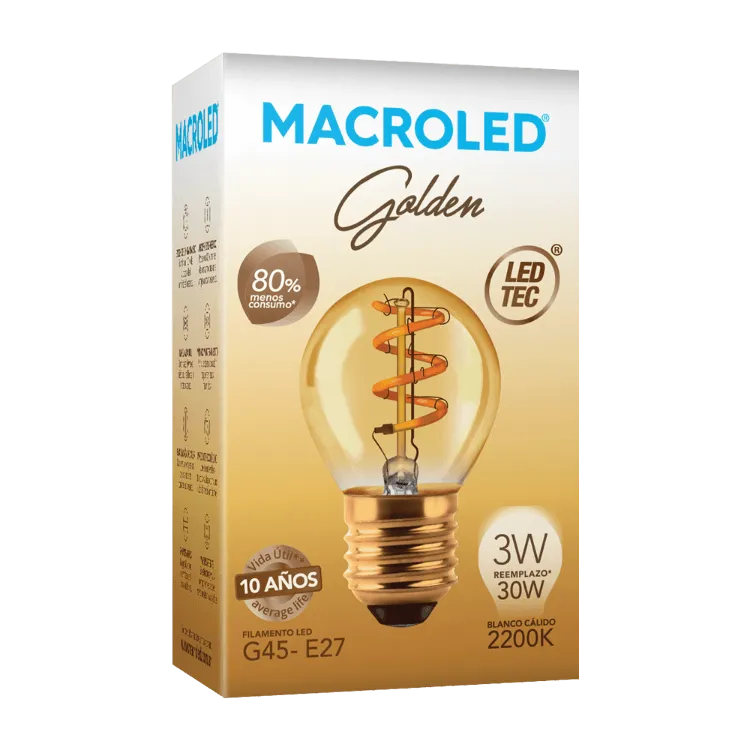 abril 19, 2026Lámpara LED 3W E27 Golden Retro Filamento Macroled
