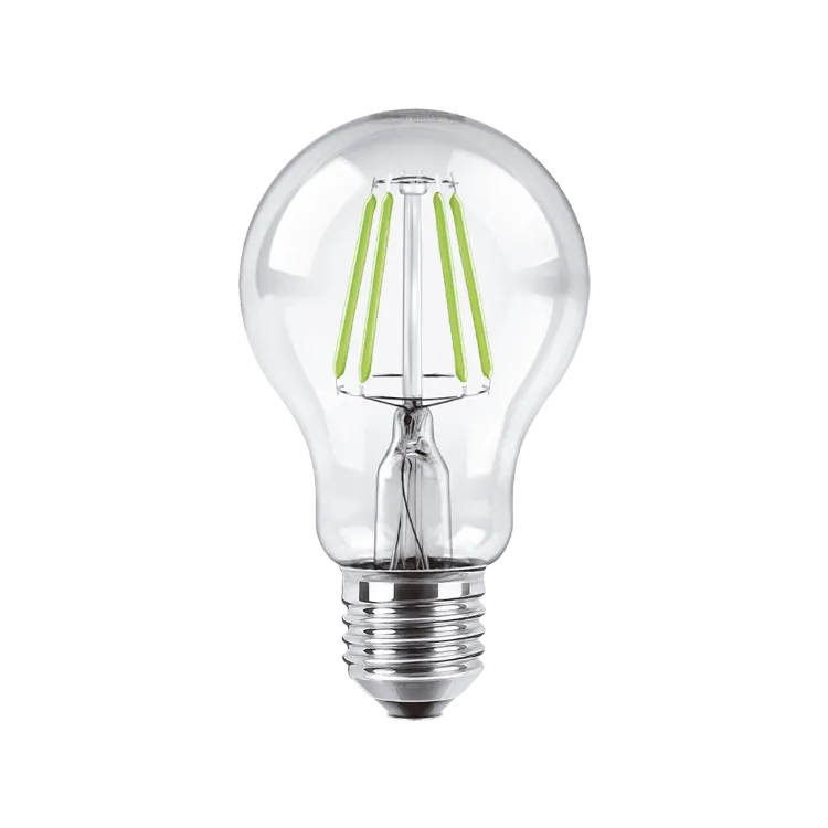 Bulbo LED forma A60, de filamento con luz de color verde. Ideal para decoración, iluminación puntual o guirnaldas._x000D_