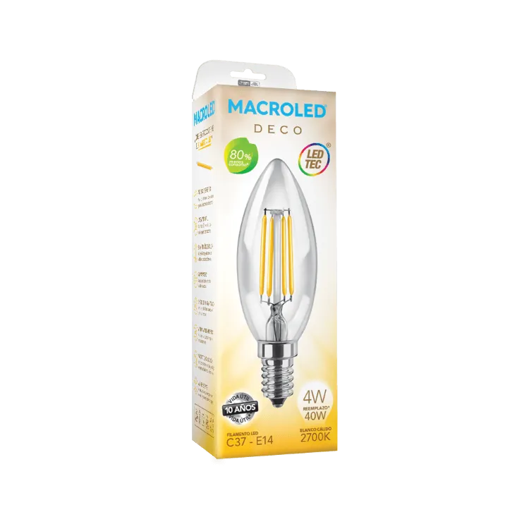 abril 19, 2026Lámpara LED 4W Velita Filamento E14 Macroled