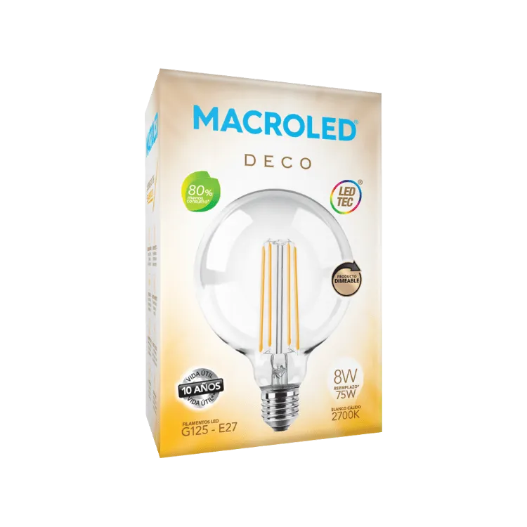 abril 19, 2026Lámpara LED 8W Globo 125 Filamento Dimerizable E27 Macroled