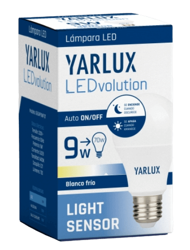 Línea LEDvolution de Yarlux. Esta lámpara se activa automáticamente cuando desciende la intensidad de la luz solar al anochecer. En el momento en que el sensor crepuscular detecta menos de 150-300LUX, la lámpara se enciende automáticamente, iluminando la zona para que en ningún momento permanezca a oscuras.