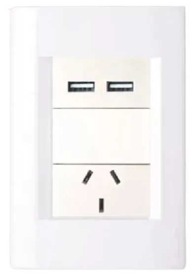 Conjunto armado rectangular, con 1 cargador USB doble y 1 tomacorriente._x000D_