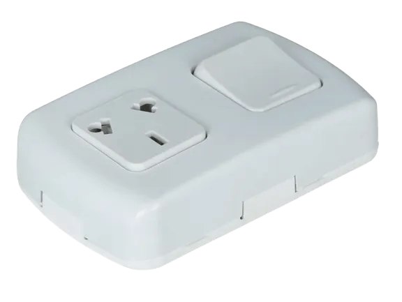 Ficha de 1 punto y 1 tomacorriente para montaje en superficie, 10A 250V._x000D_