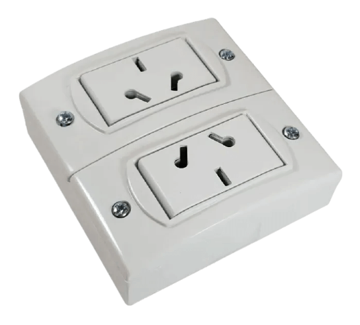 Llave de superficie extrachata armada, de 2 tomacorrientes combinación.