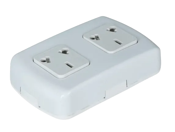 Ficha de 2 tomacorrientes para montaje en superficie, 10A 250V._x000D_
