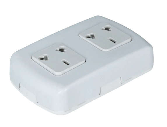 Ficha de 2 tomacorrientes para montaje en superficie, 10A 250V.