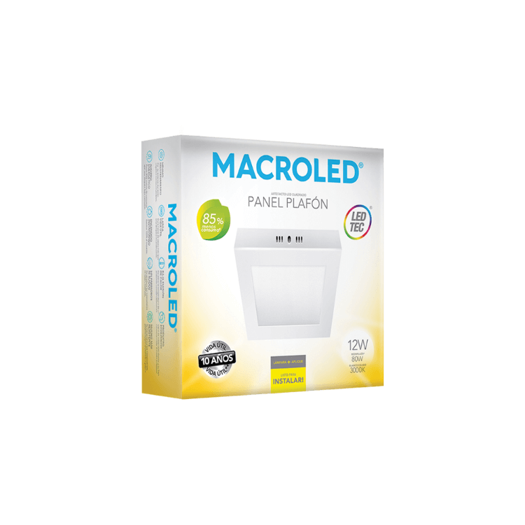 Panel plafón LED cuadrado blanco 12W. Sin parpadeos, ecológico y con baja emisión de calor.