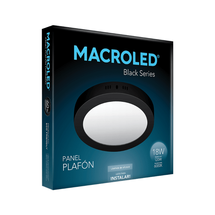 Panel plafón LED redondo negro 18W. Sin parpadeos, ecológico y con baja emisión de calor.